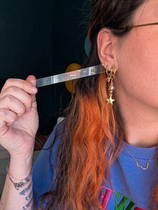 Charms - Laser Etched Champagne Drop& Peach Zircon - Golden Stars