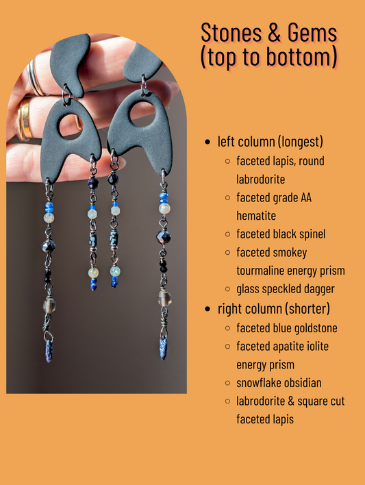 Azriel's Jetsons - Lapis, Black Spinel, Snowflake Obsidian, Blue Goldstone, Labradorite