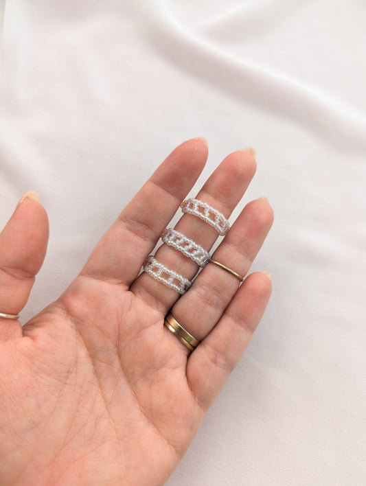 Chunky Ring - 4 Petal Flower - Matte Rainbow Pearl, Pink, Orange - Choose Your Size