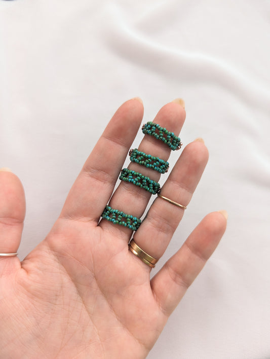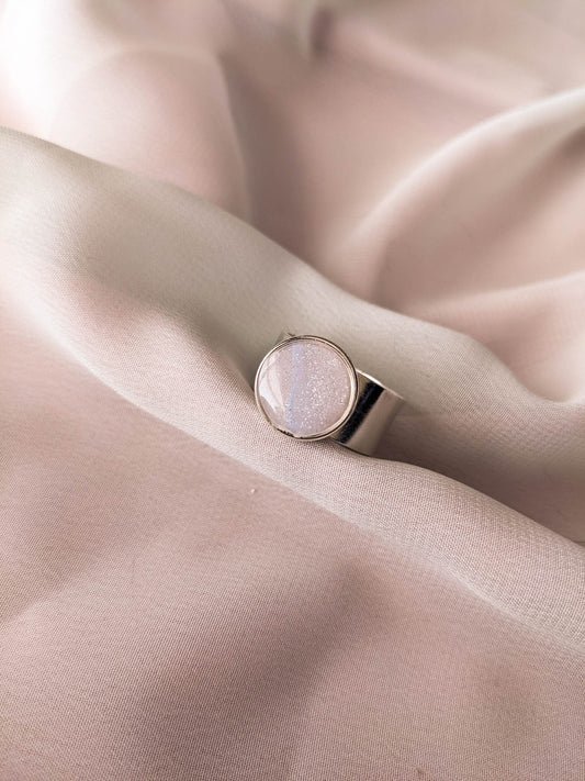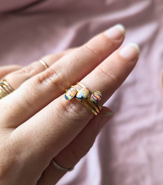Chunky Ring - 4 Petal Flower - Turquoise Picasso & Metallic Blush - Choose Your Size