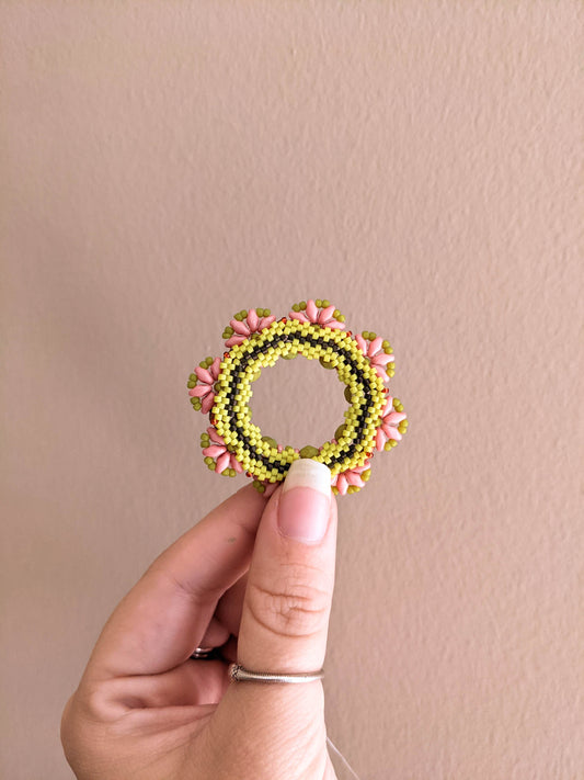 Daisy Circlet - Chartreuse & Peach - 18 inch Gold Filled