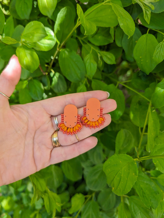 Oval Stud - Pumpkin & Blood Orange - Limited