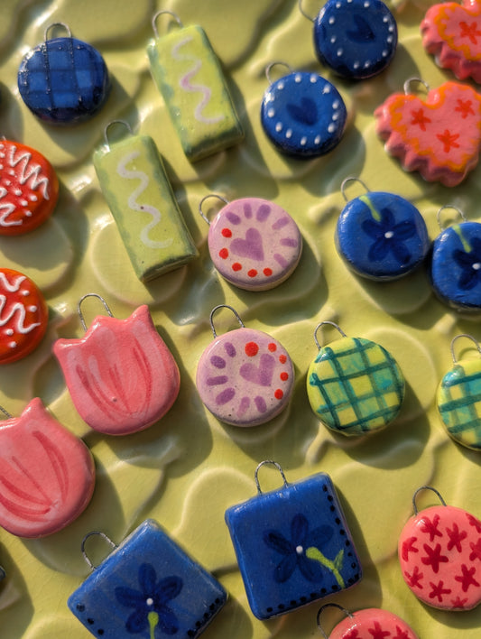 Charms - Stoneware - Cobalt Hearts & Teardrops