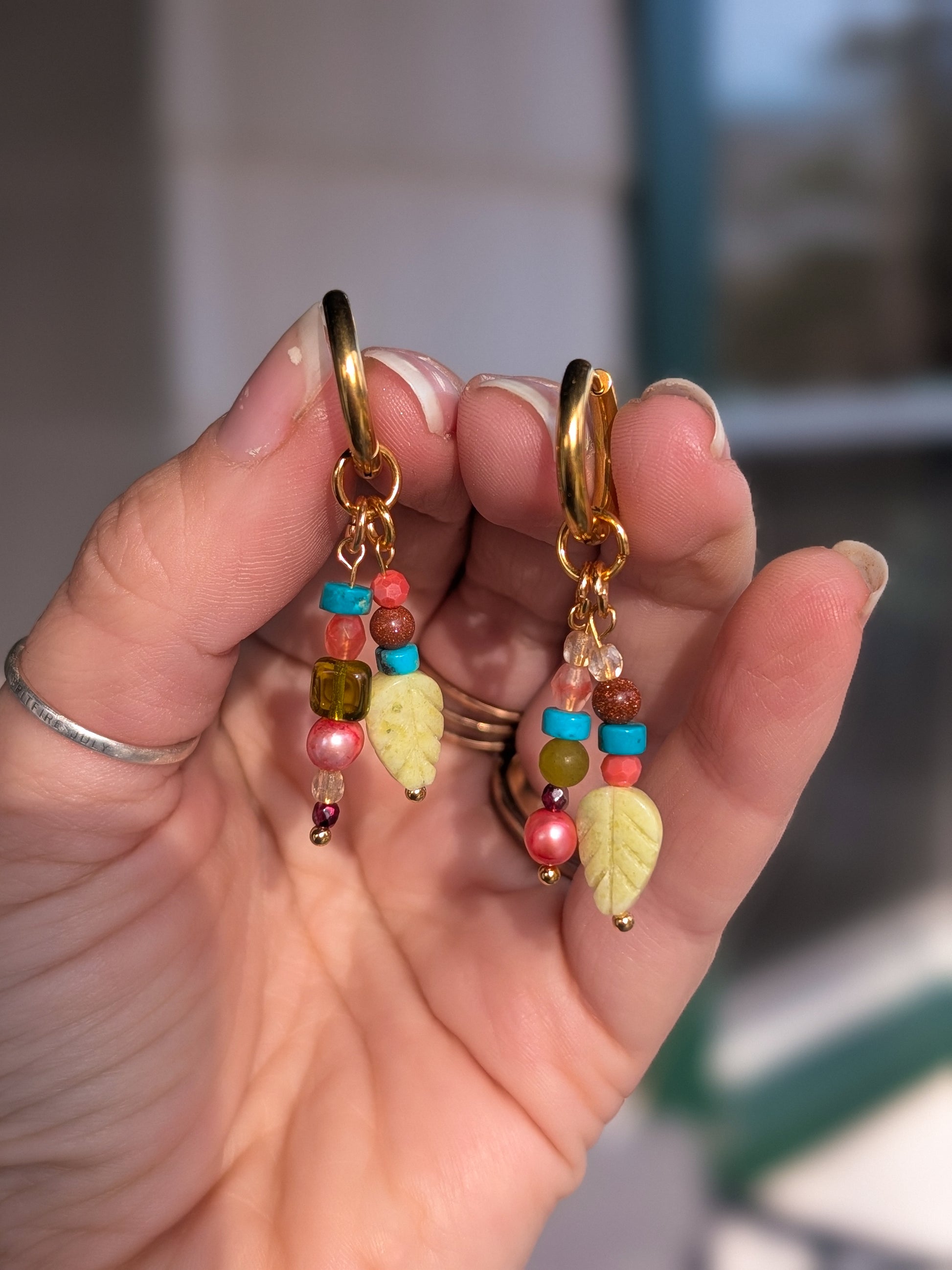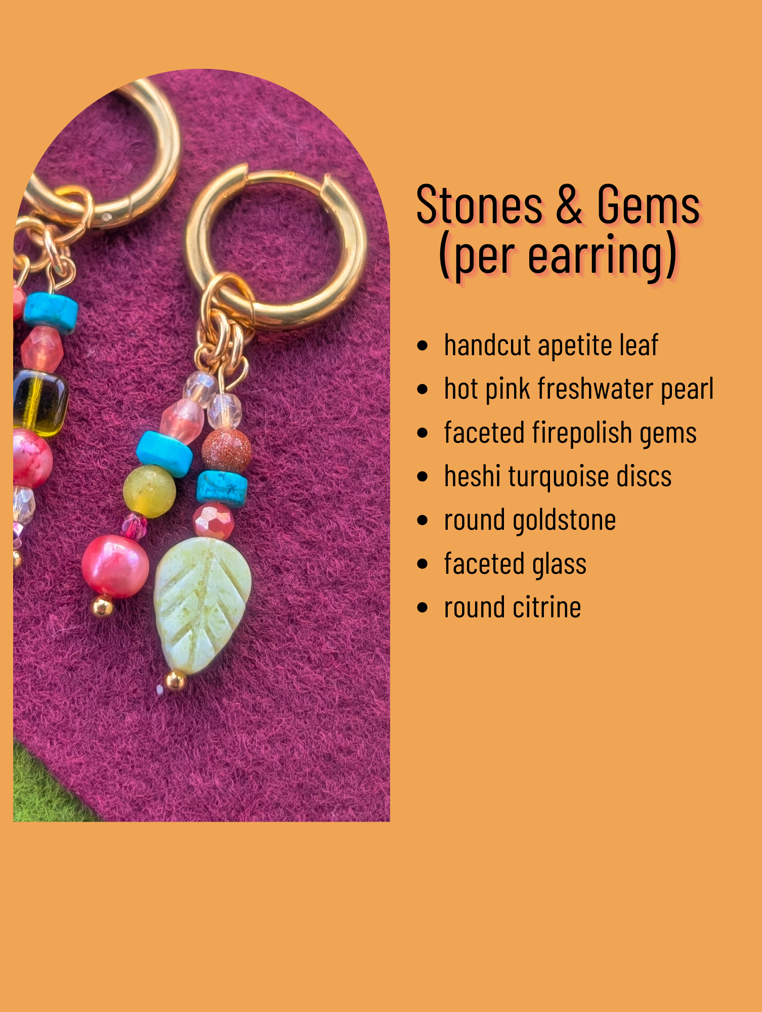 Apetite Leaf, Freshwater Pearl, Turquoise, Goldstone, Citrine - Gemstone Gallery #9