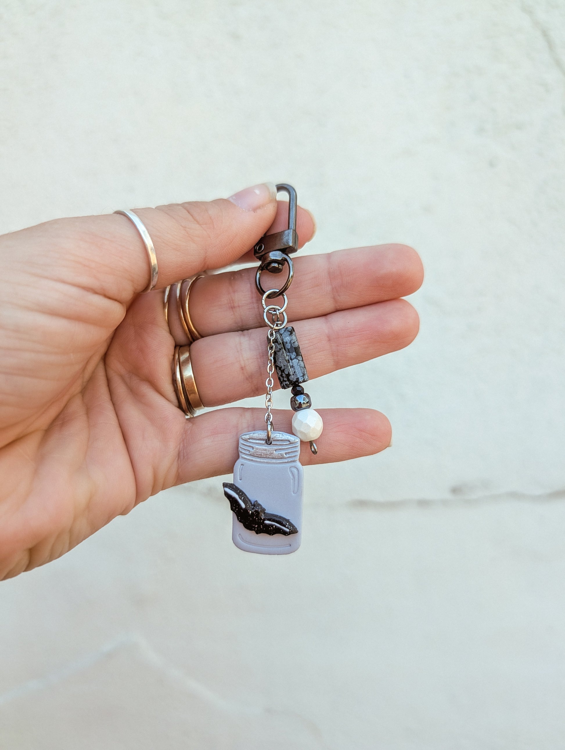 Bag Charm - Bat Soup - Snowflake Obsidian