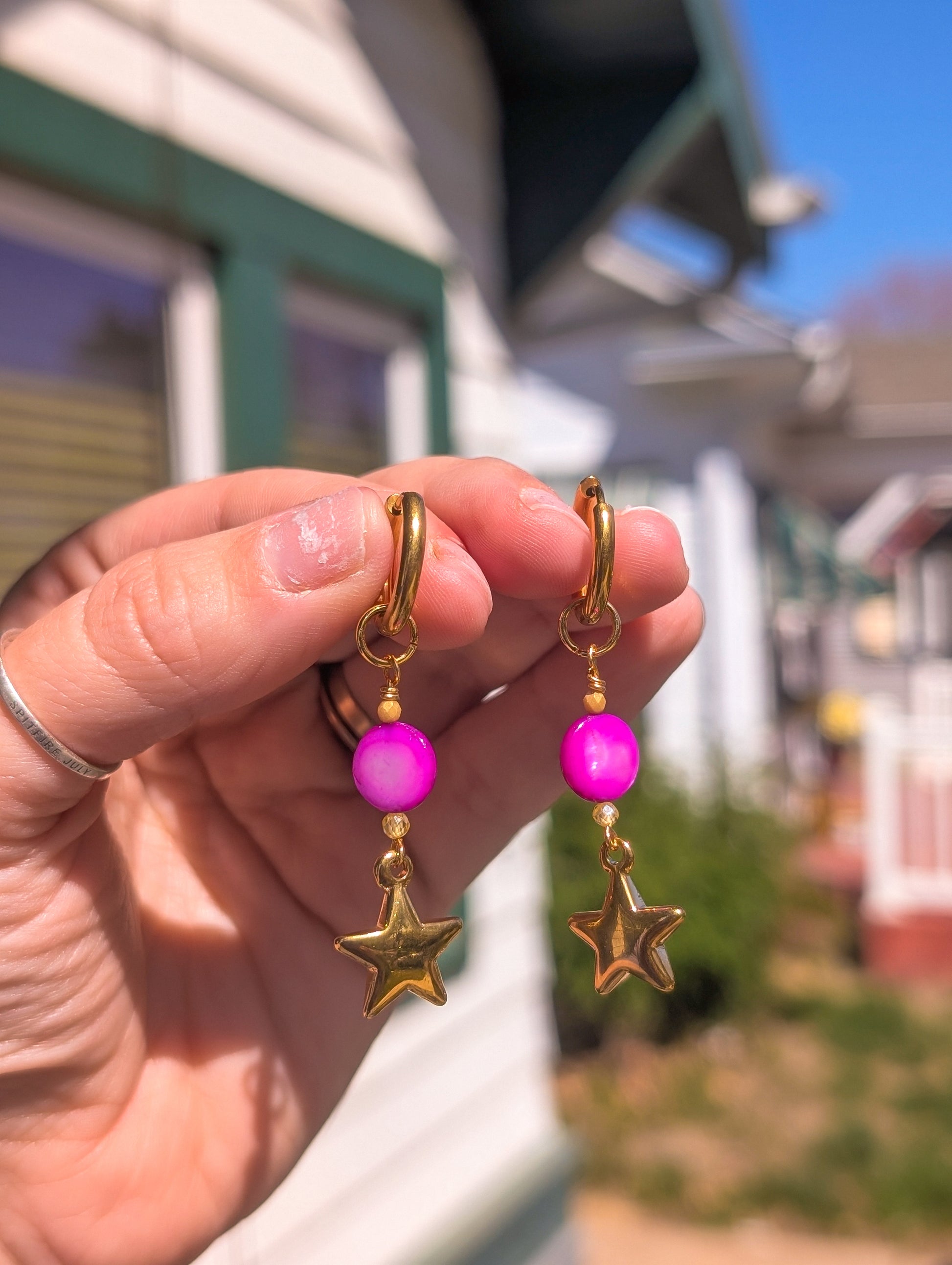 Charms - Fuchsia River Shell & Lemon Zircon - Golden Star