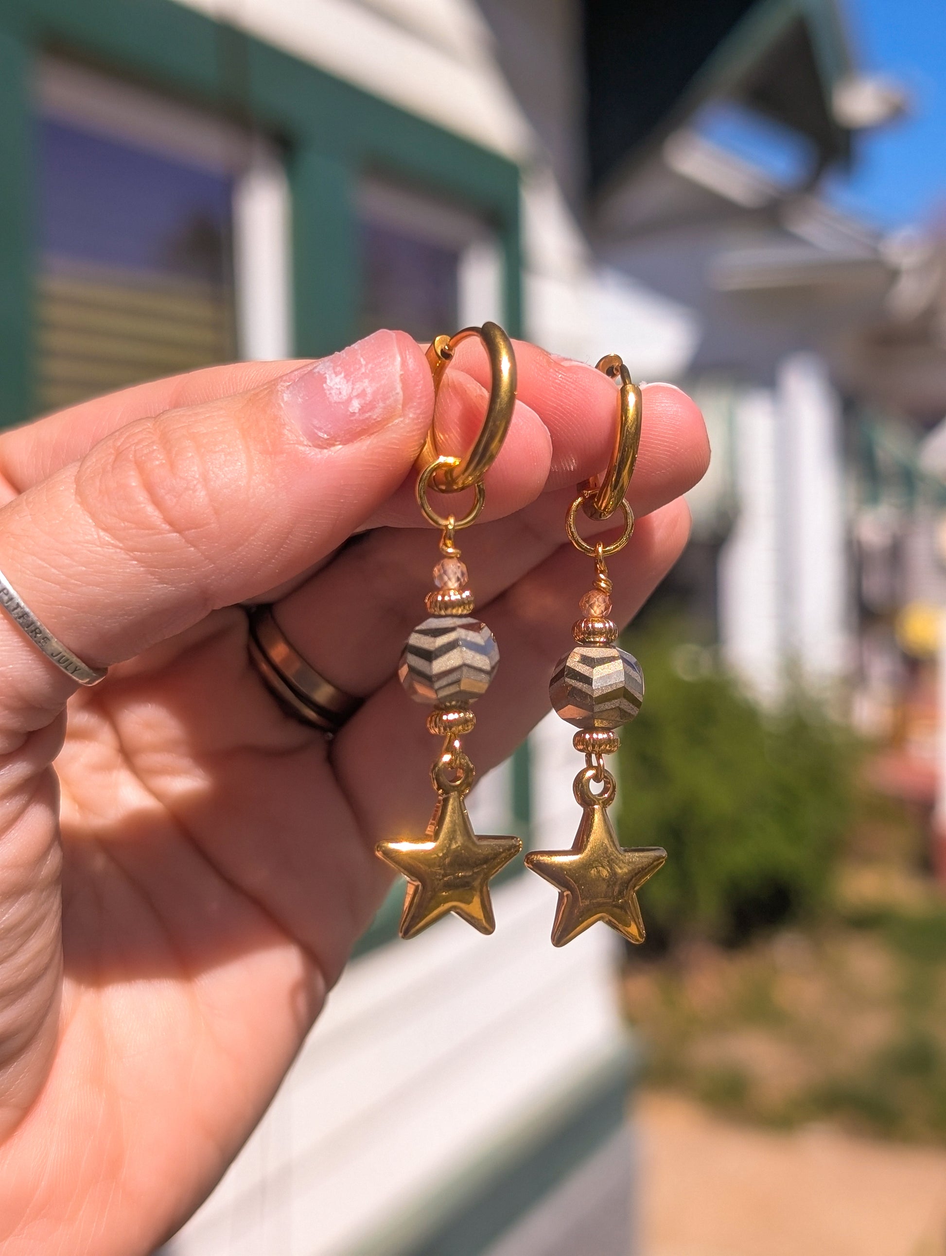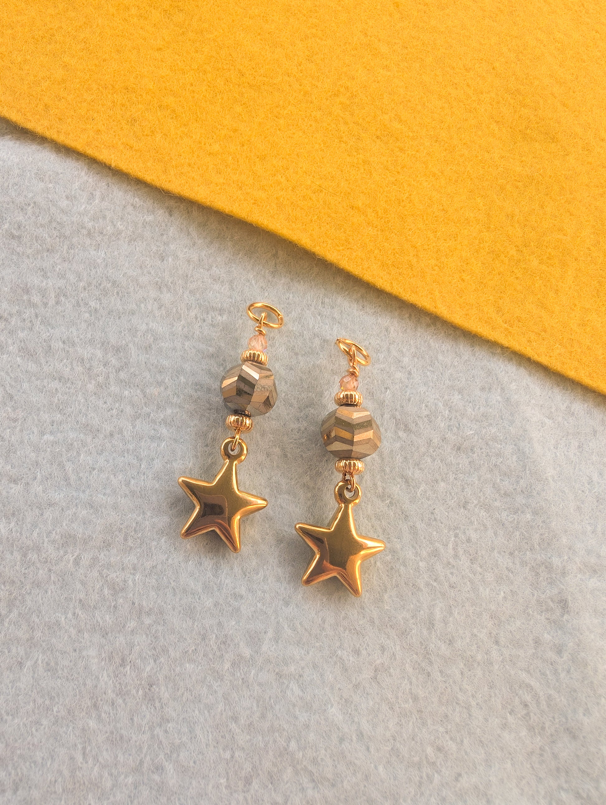 Charms - Laser Etched Champagne Drop& Peach Zircon - Golden Stars