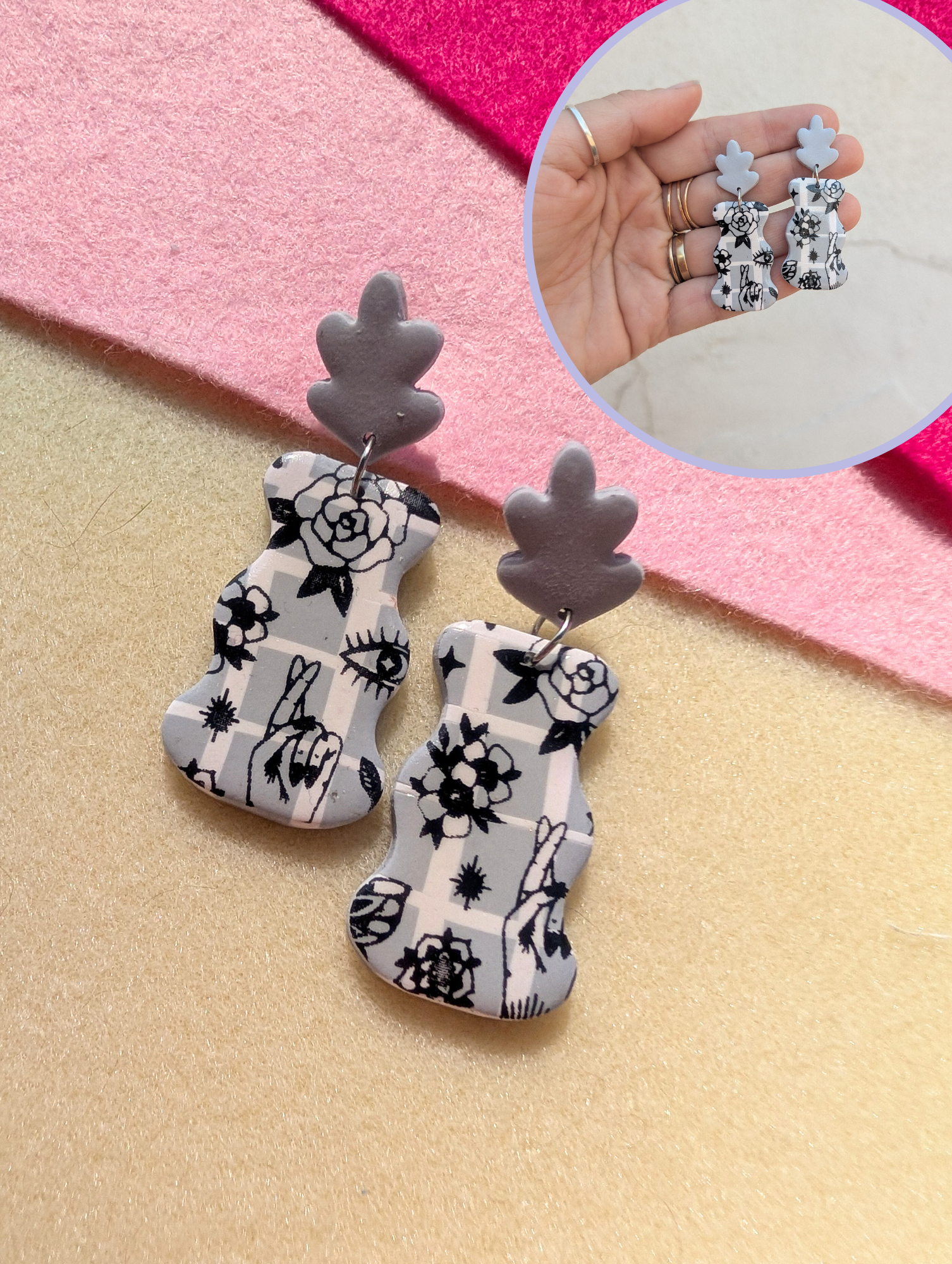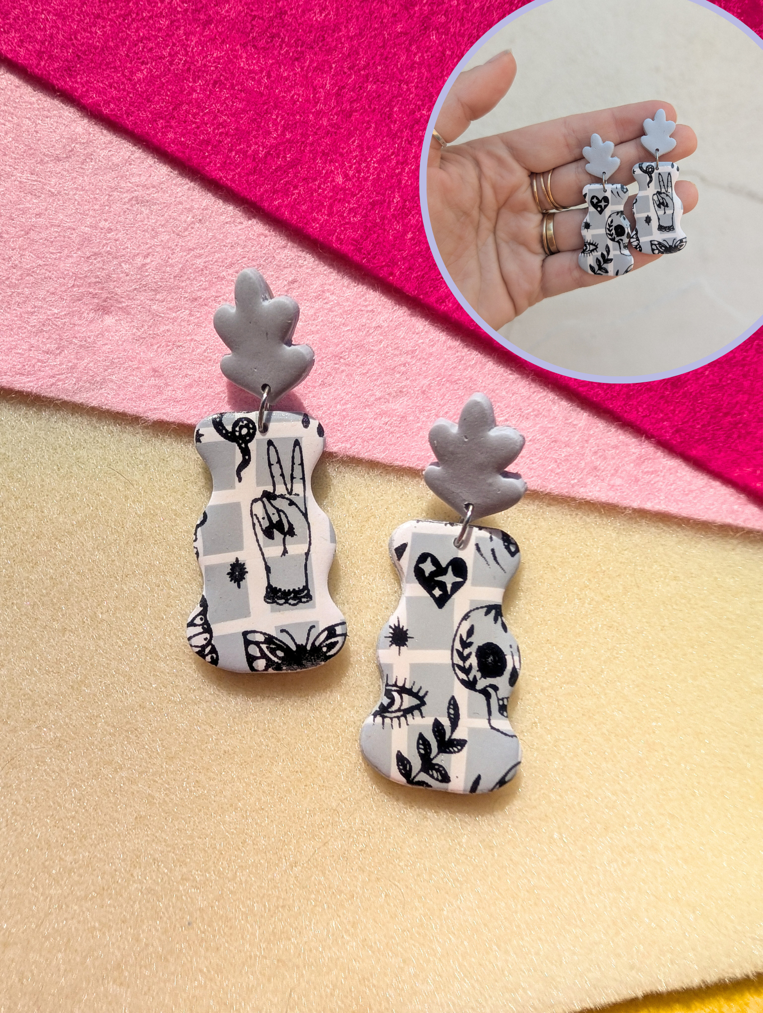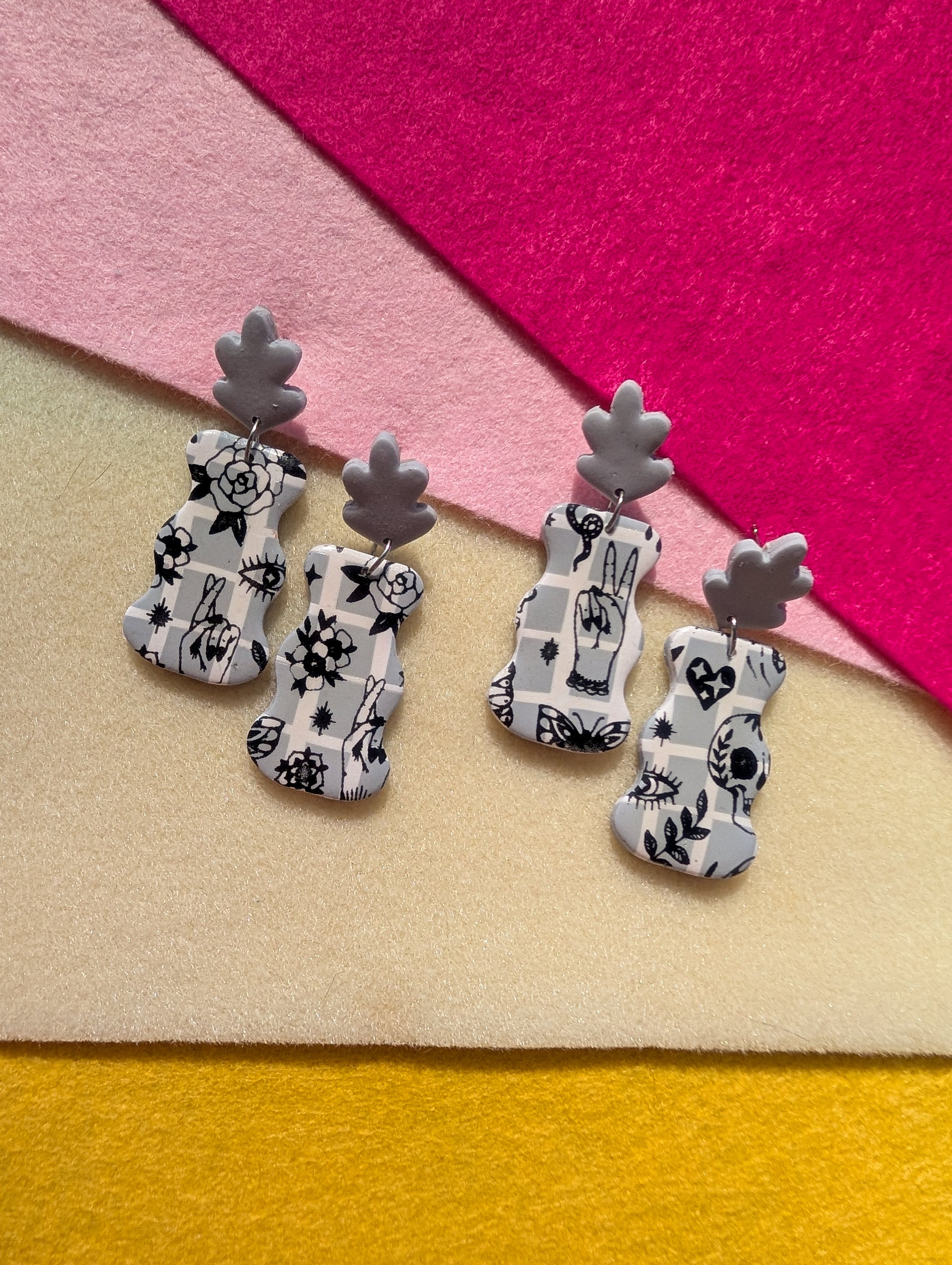 - Stud Earrings: Studs are surgical grade stainless steel and hypoallergenic. Studs are baked directly into the clay using a special clay bonder. This is NOT glue.