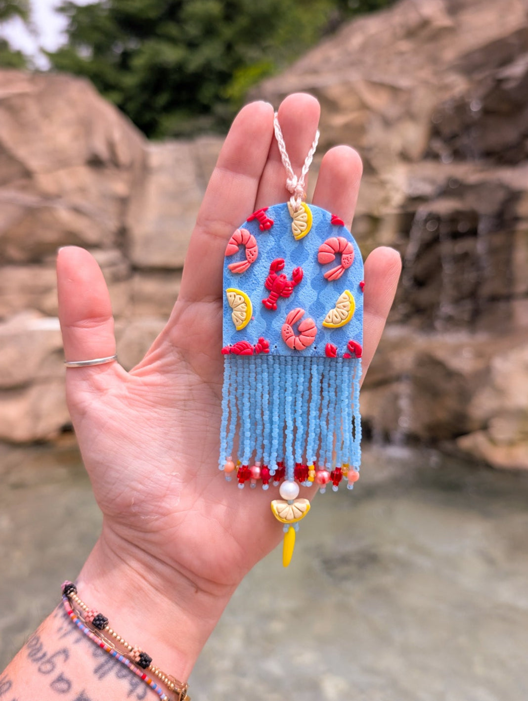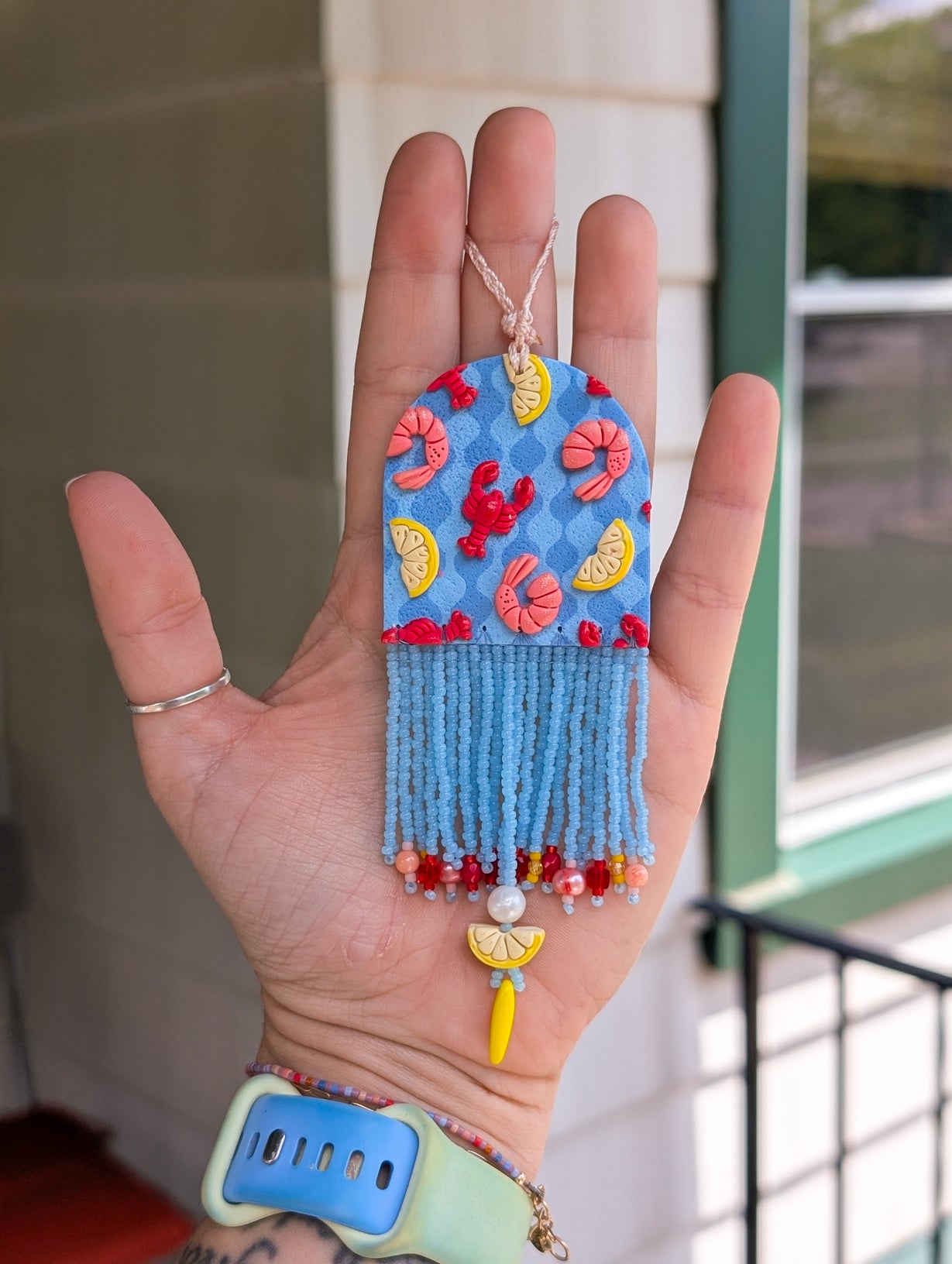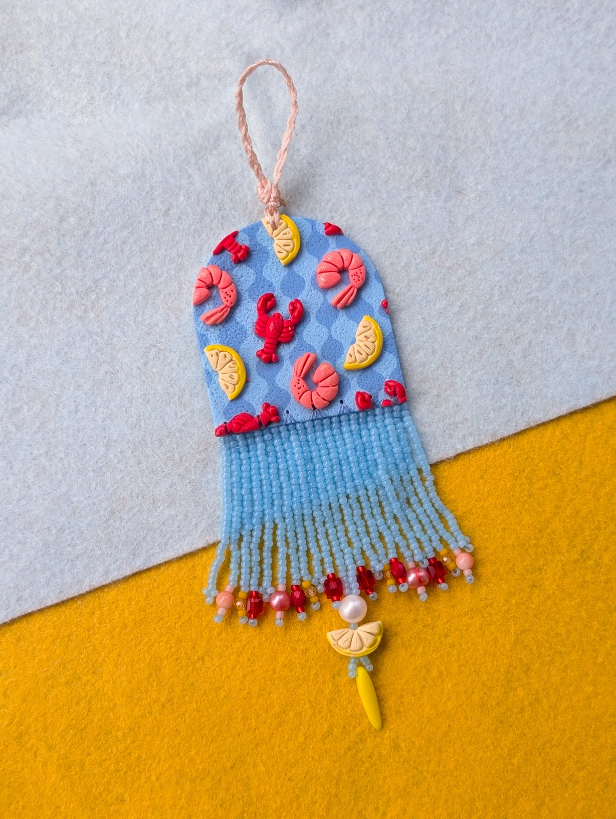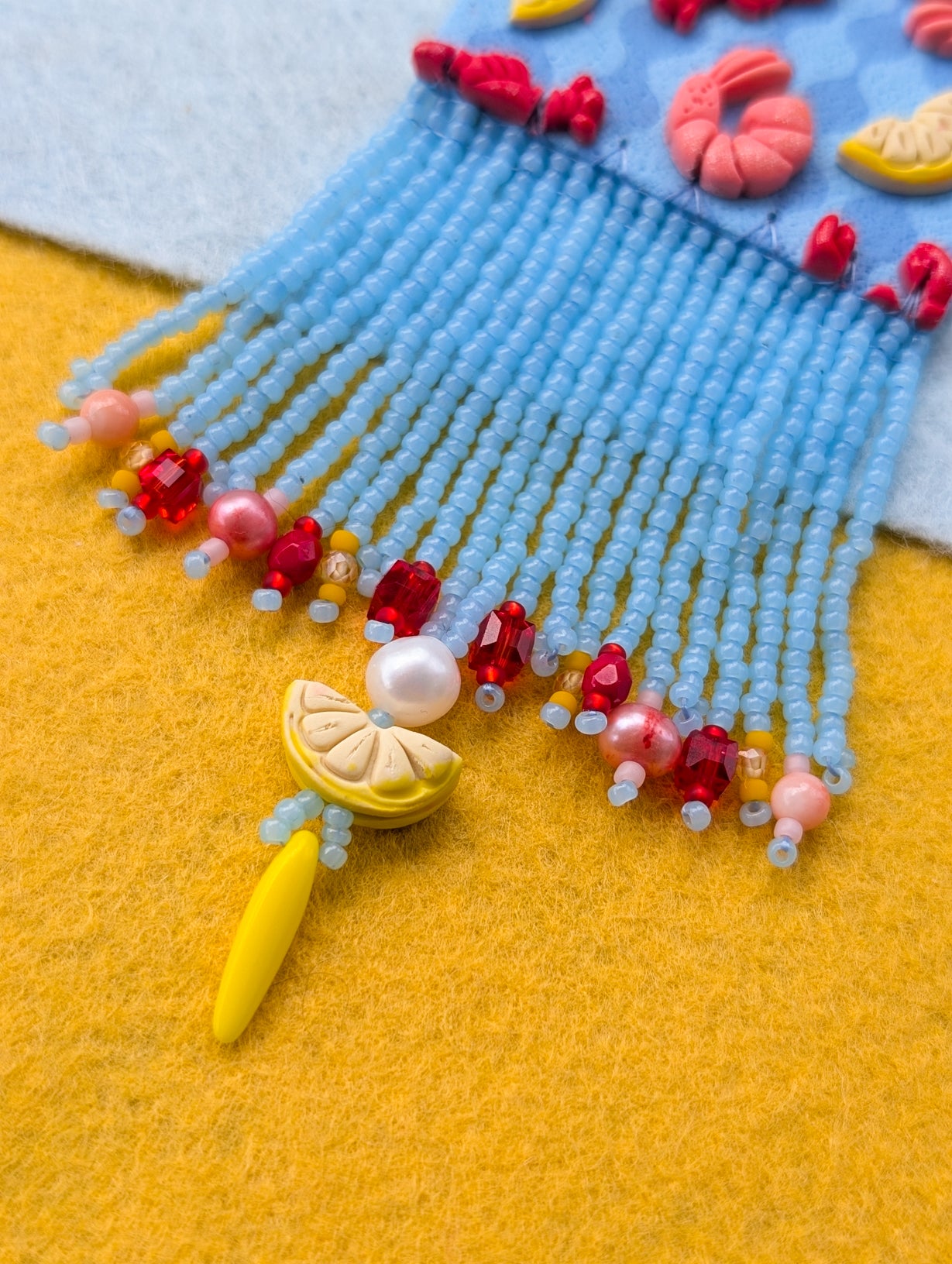 Beads on tips: handmade 3d lemon bead, freshwater pearl, dagger bead, faceted cube crystal, bamboo coral, faceted citrine